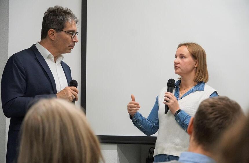 Landtagsabgeordneter Dr. Andre Baumann und Polizeiexpertin Marilena Geugjes sprechen über das Thema Innere Sicherheit.